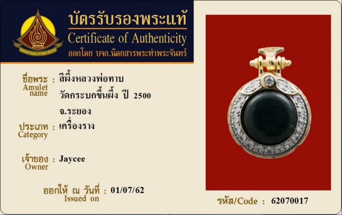 ค้นหาใบการันตีพระแท้