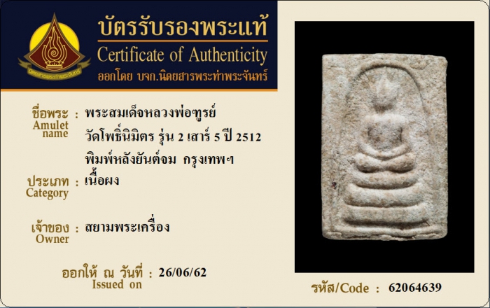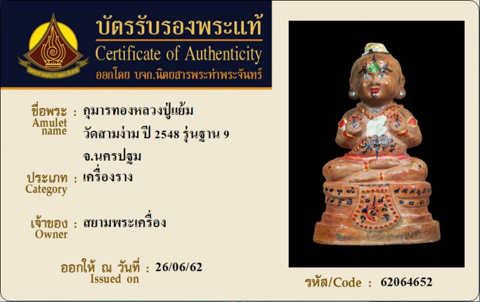 ค้นหาใบการันตีพระแท้