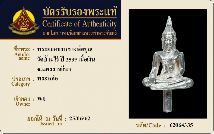ค้นหาใบการันตีพระแท้
