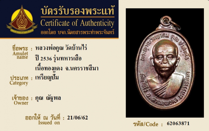 ค้นหาใบการันตีพระแท้