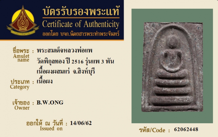 ค้นหาใบการันตีพระแท้