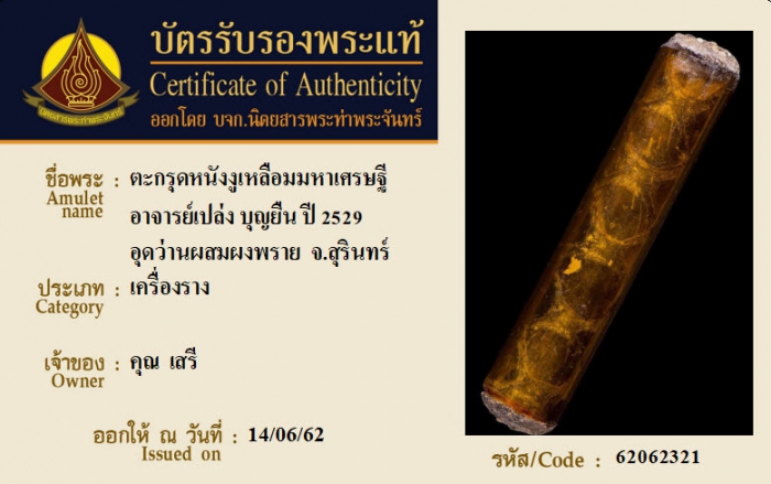 ค้นหาใบการันตีพระแท้