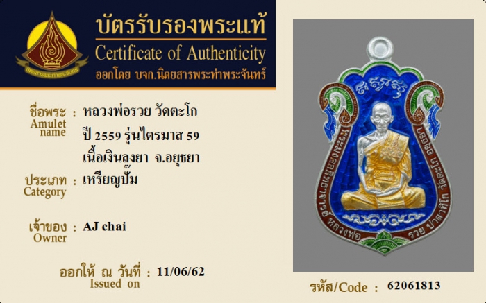 ค้นหาใบการันตีพระแท้
