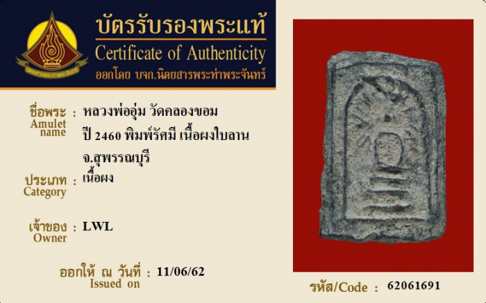 ค้นหาใบการันตีพระแท้