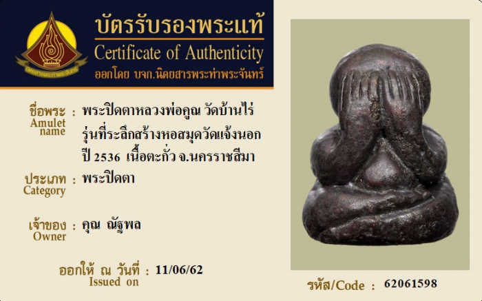 ค้นหาใบการันตีพระแท้