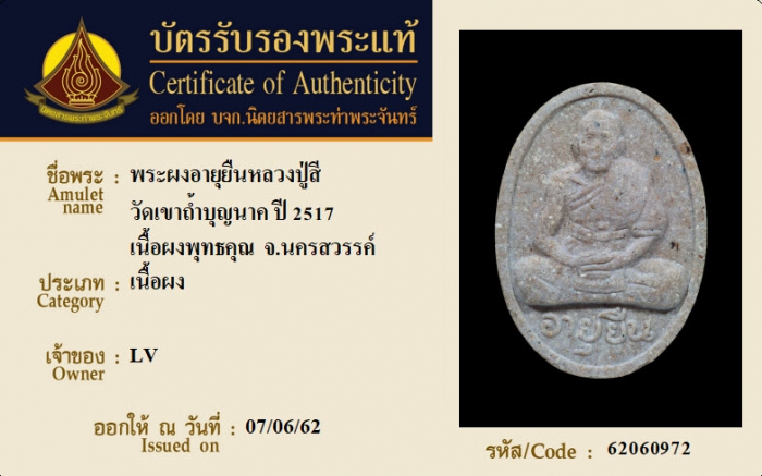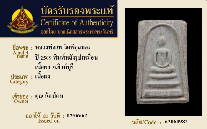 ค้นหาใบการันตีพระแท้