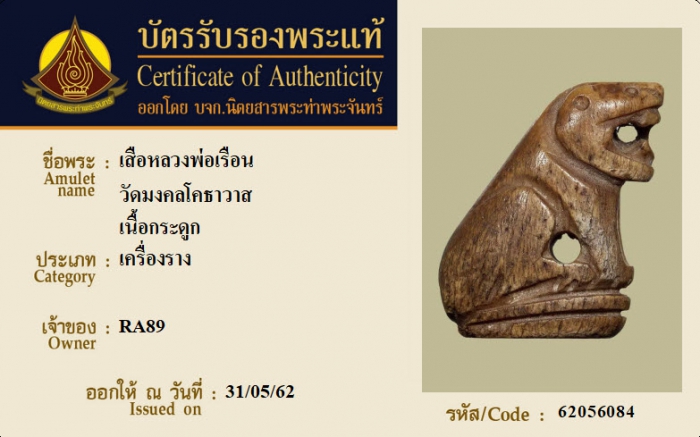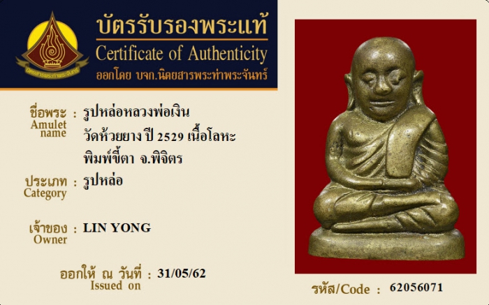 ค้นหาใบการันตีพระแท้