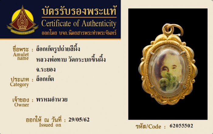 ค้นหาใบการันตีพระแท้