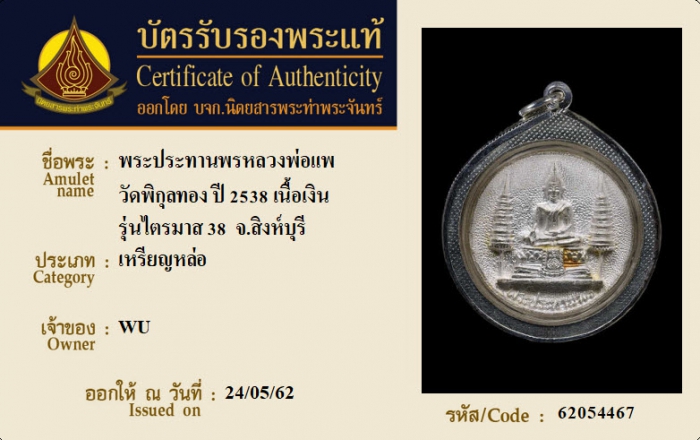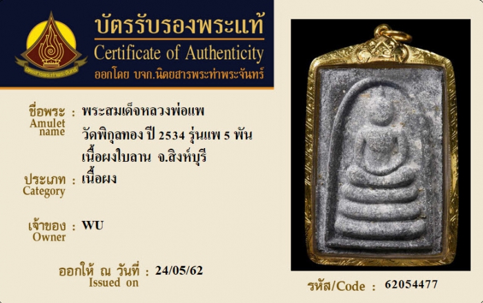 ค้นหาใบการันตีพระแท้
