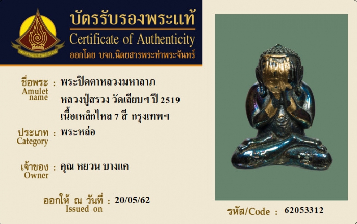 ค้นหาใบการันตีพระแท้