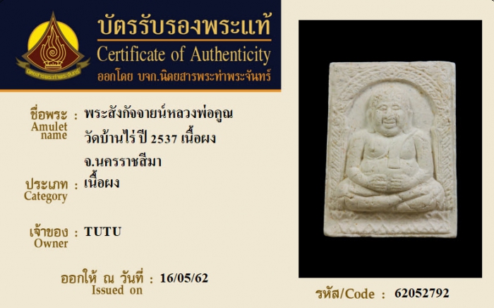 ค้นหาใบการันตีพระแท้