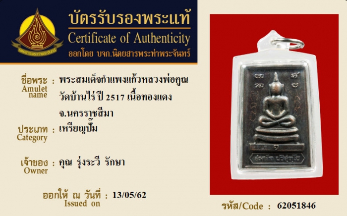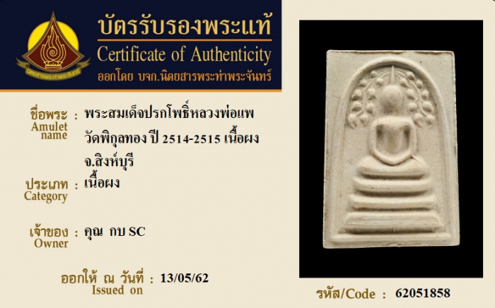 ค้นหาใบการันตีพระแท้