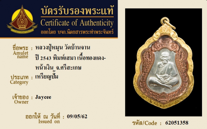 ค้นหาใบการันตีพระแท้