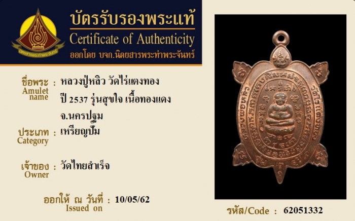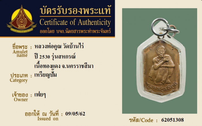 ค้นหาใบการันตีพระแท้