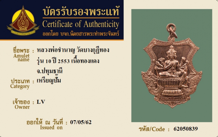ค้นหาใบการันตีพระแท้