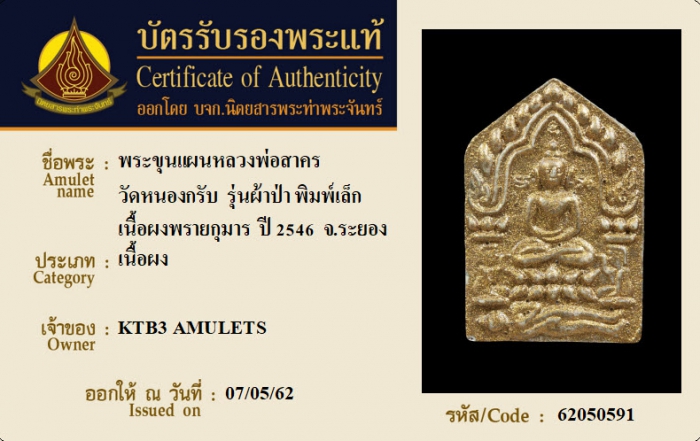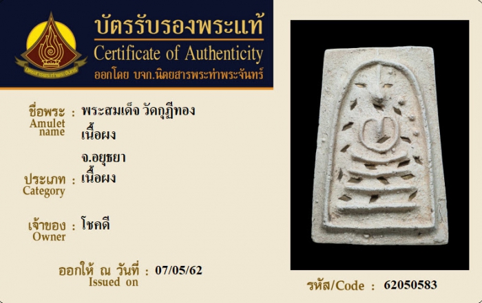 ค้นหาใบการันตีพระแท้