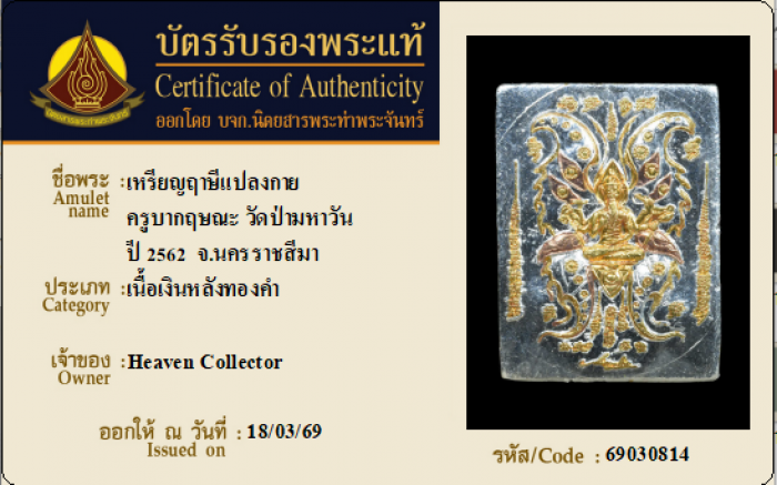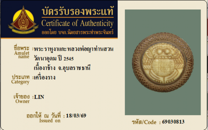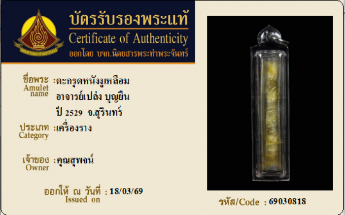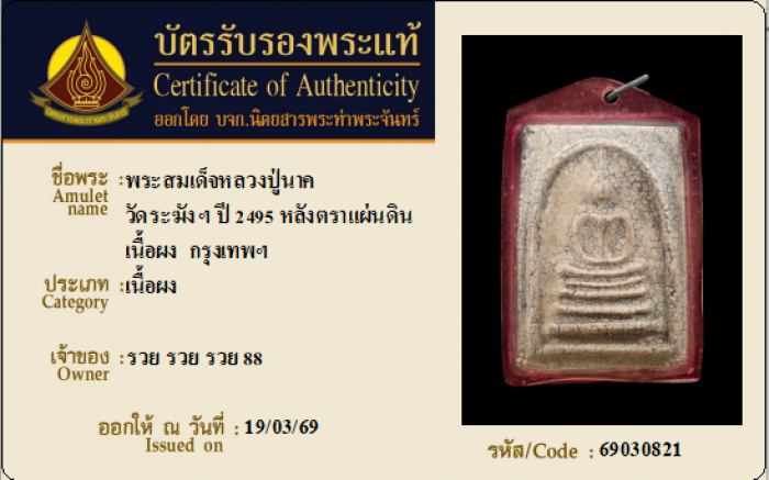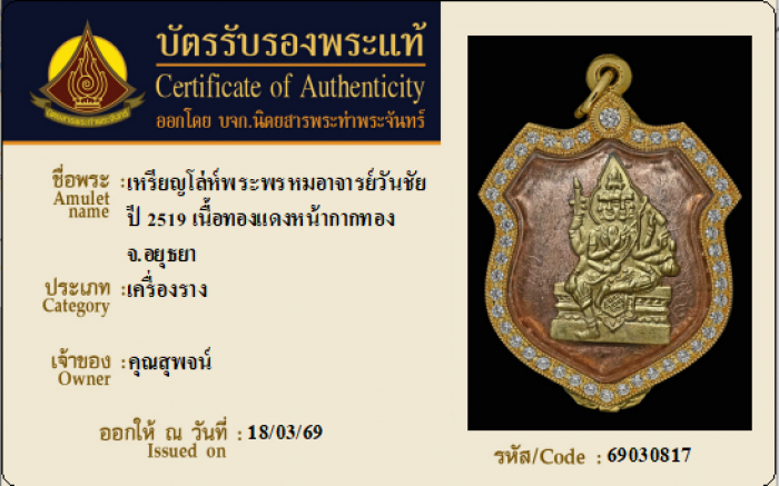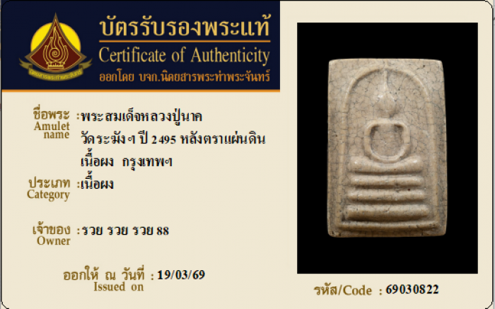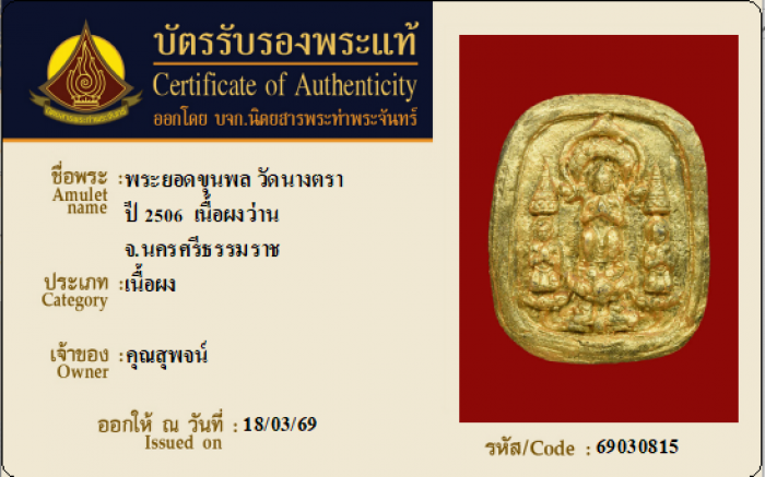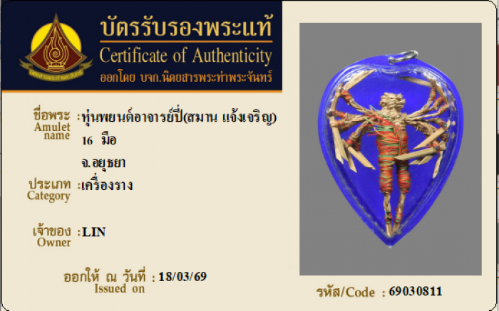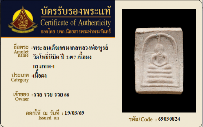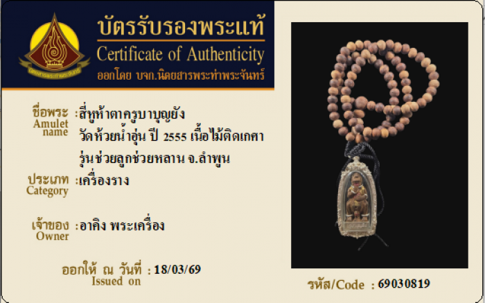 ค้นหาใบการันตีพระแท้