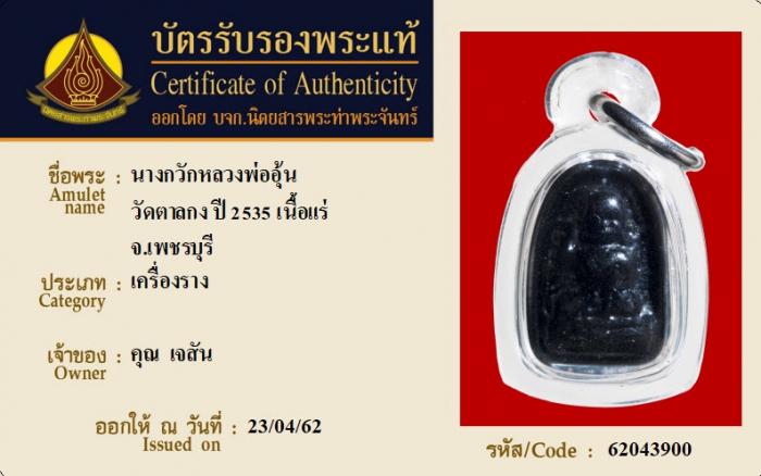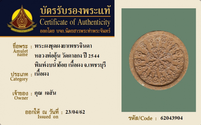 ค้นหาใบการันตีพระแท้