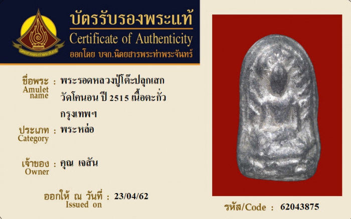 ค้นหาใบการันตีพระแท้