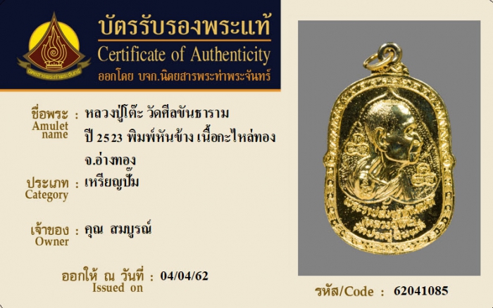 ค้นหาใบการันตีพระแท้