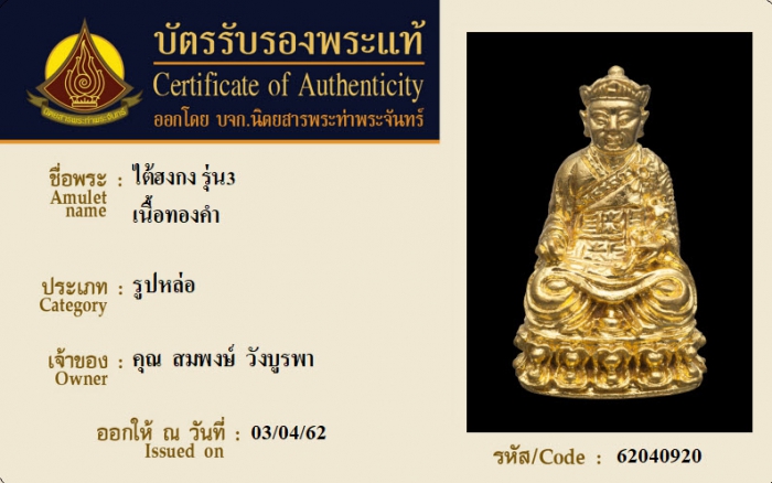 ค้นหาใบการันตีพระแท้