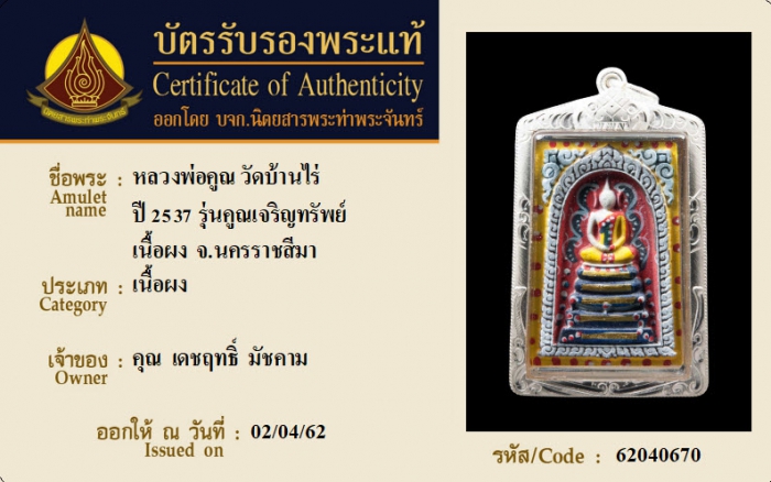ค้นหาใบการันตีพระแท้