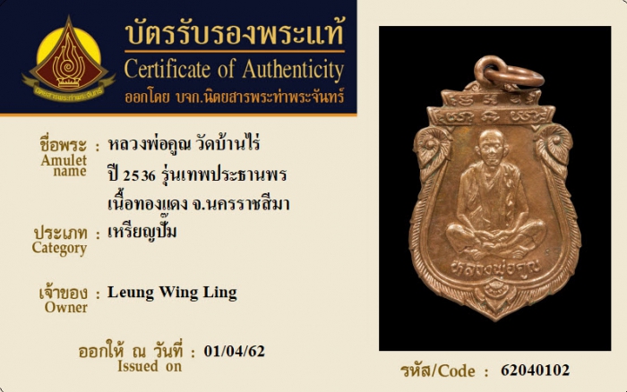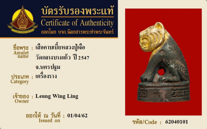 ค้นหาใบการันตีพระแท้