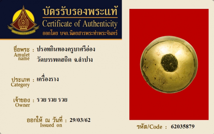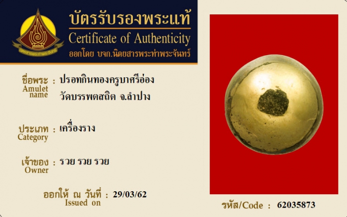 ค้นหาใบการันตีพระแท้