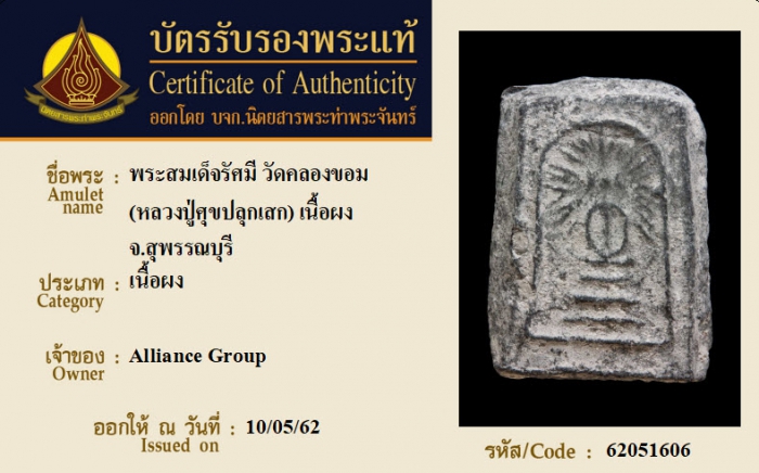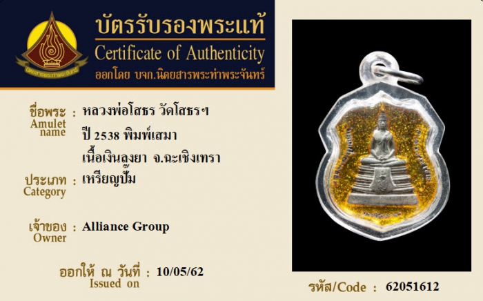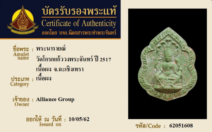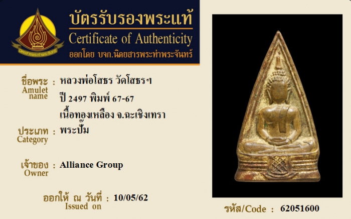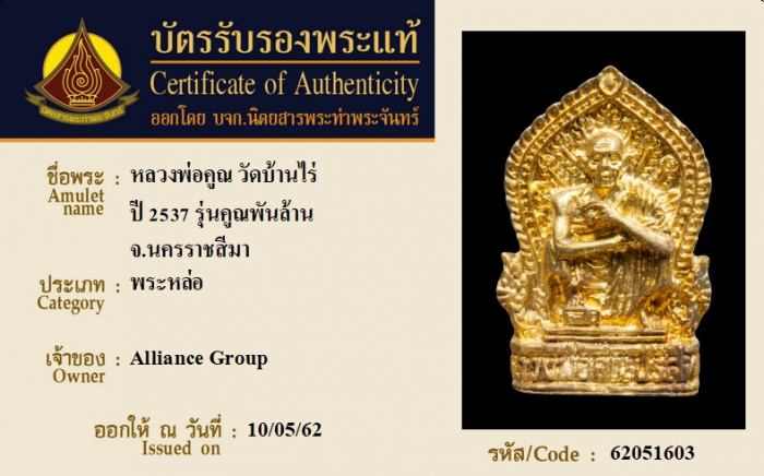 ค้นหาใบการันตีพระแท้