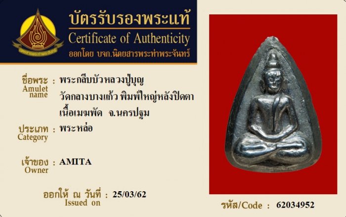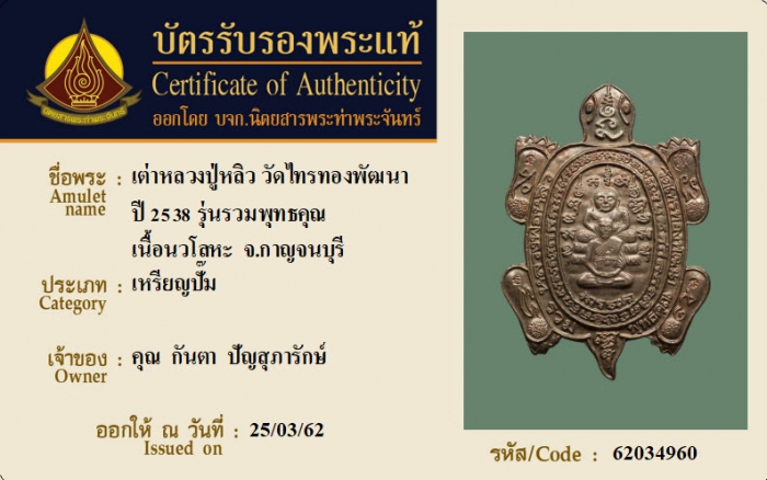 ค้นหาใบการันตีพระแท้