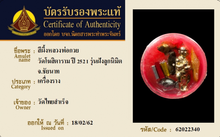 ค้นหาใบการันตีพระแท้