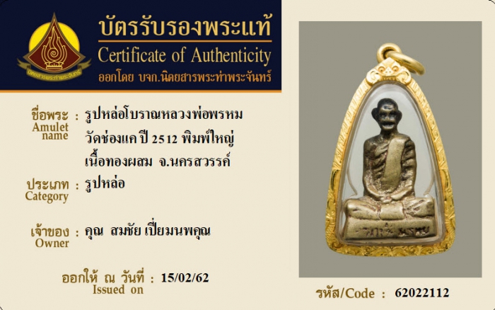 ค้นหาใบการันตีพระแท้