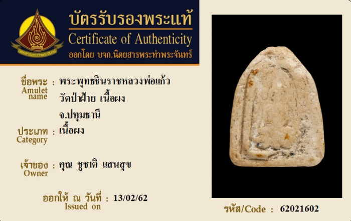 ค้นหาใบการันตีพระแท้