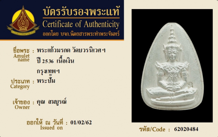 ค้นหาใบการันตีพระแท้