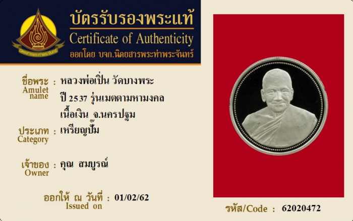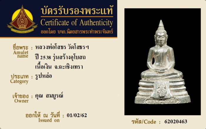 ค้นหาใบการันตีพระแท้