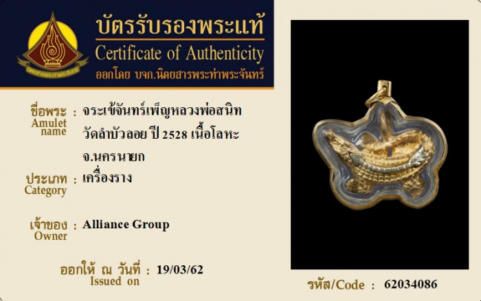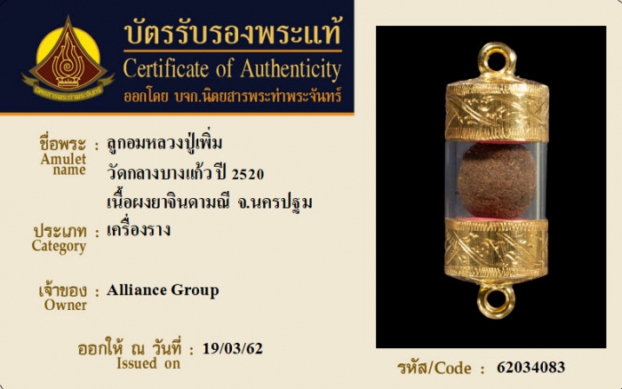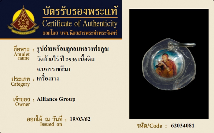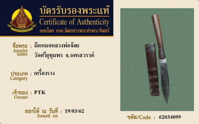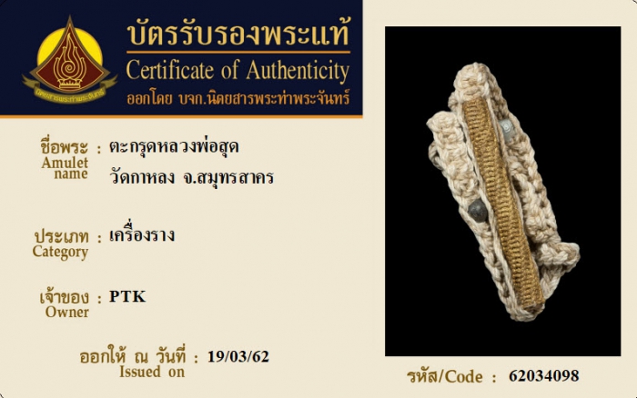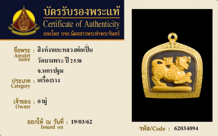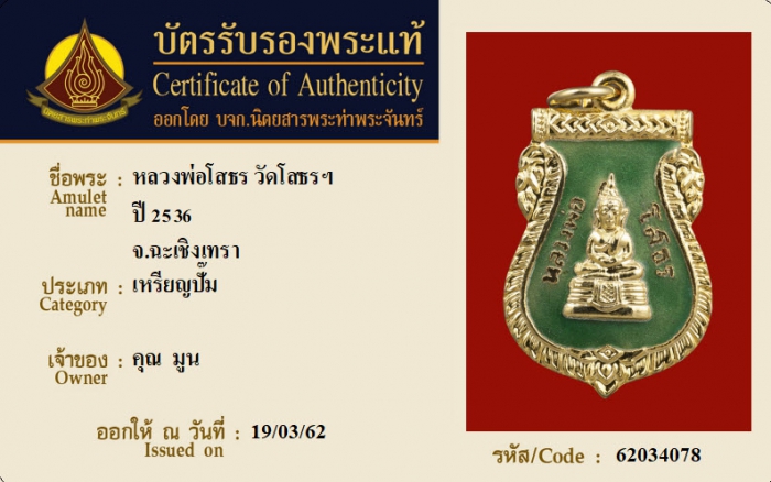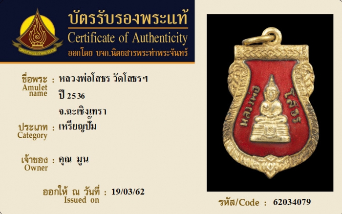 ค้นหาใบการันตีพระแท้