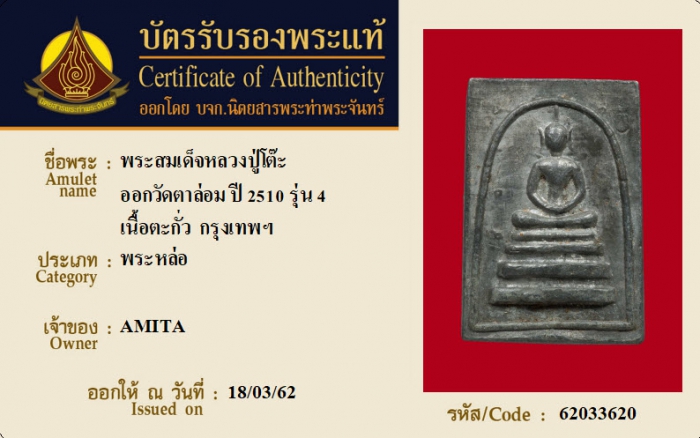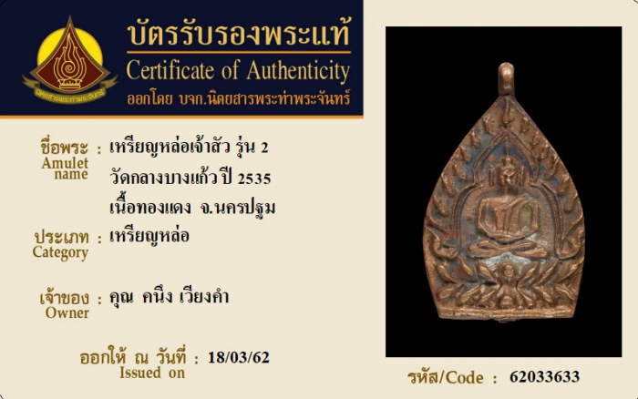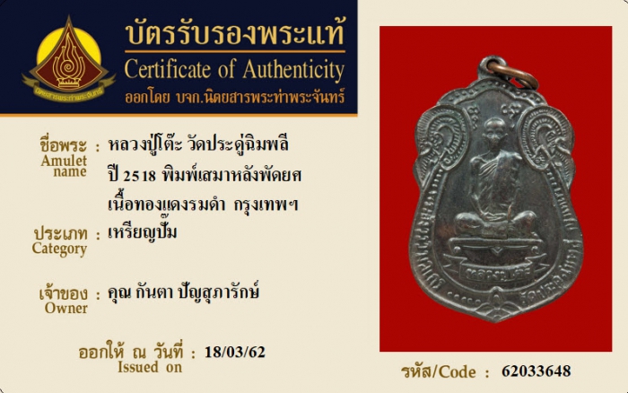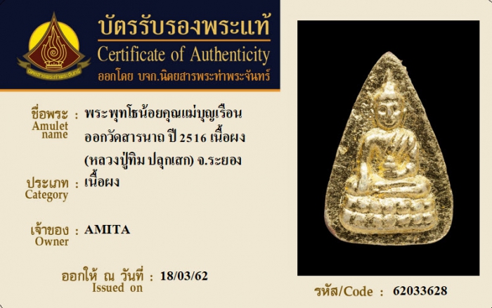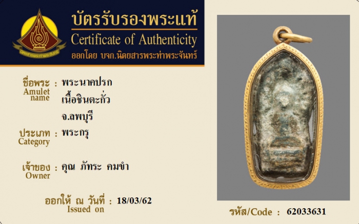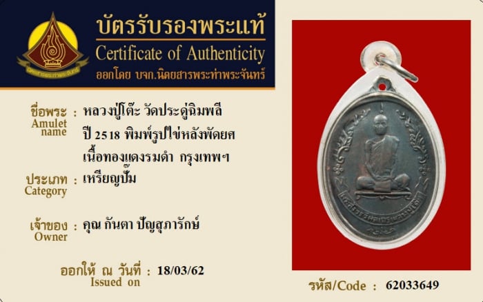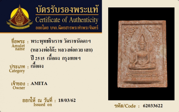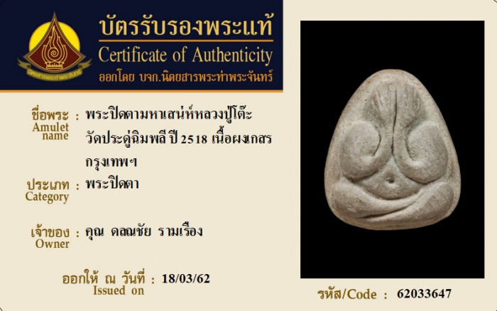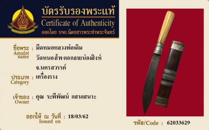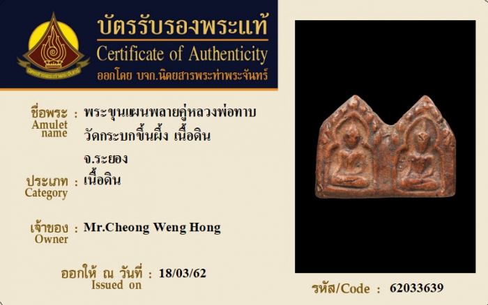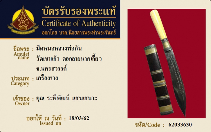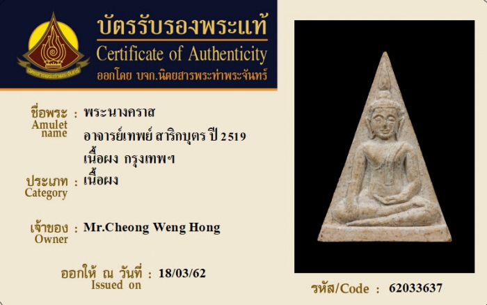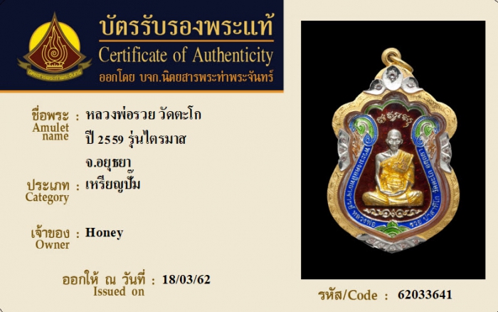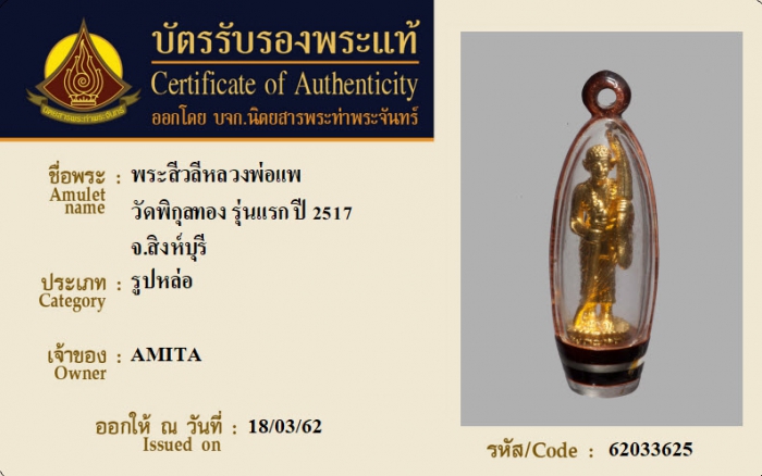 ค้นหาใบการันตีพระแท้