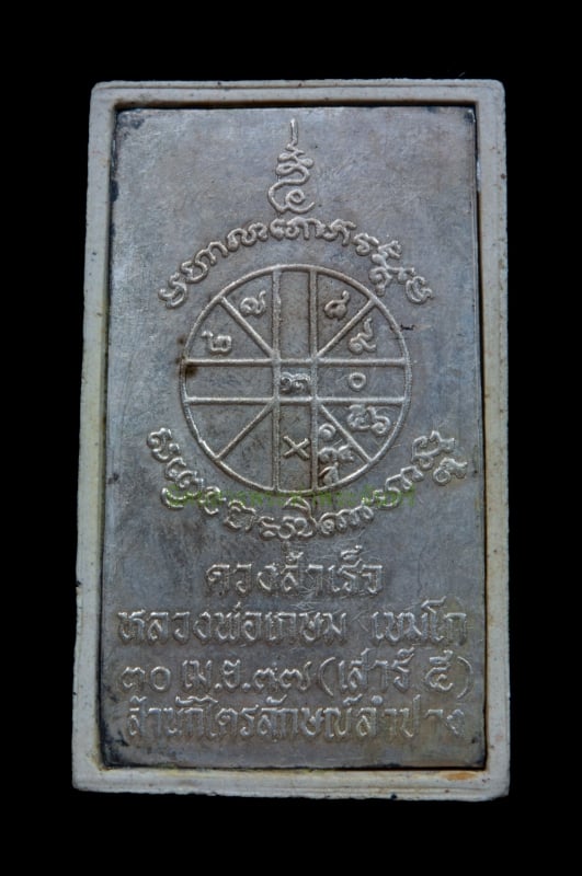 หมายเลขใบการันตี 63100880 ชื่อพระ พระสมเด็จหลังแผ่นเงิน หลวงพ่อเกษม สุสานไตรลักษณ์ ปี 2537 เนื้อผงหลังแผ่นเงิน จ.ลำปาง เจ้าของ เชียงใหม่พุทธศิลป์ หมวดหมู่ พระเนื้อผง / ดิน / ว่าน