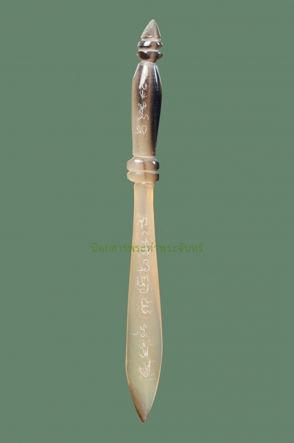 หมายเลขใบการันตี 65020091 ชื่อพระ พระขรรค์หลวงพ่อเปิ่น วัดบางพระ ปี 2543 เนื้อเขาควาย จ.นครปฐม เจ้าของ แสงทอง หมวดหมู่ เครื่องราง