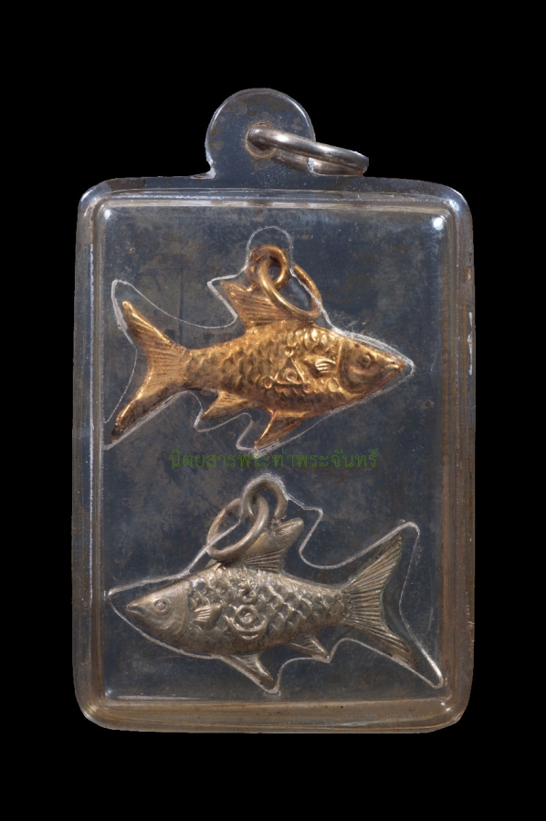 หมายเลขใบการันตี 67122406 ชื่อพระ ปลาตะเพียนหลวงพ่อจง วัดหน้าต่างนอก ปี 2490 เนื้อกะไหล่เงิน-ทอง จ.อยุธยา เจ้าของ รวย รวย รวย 88 หมวดหมู่ เครื่องราง