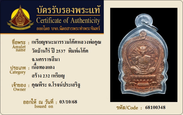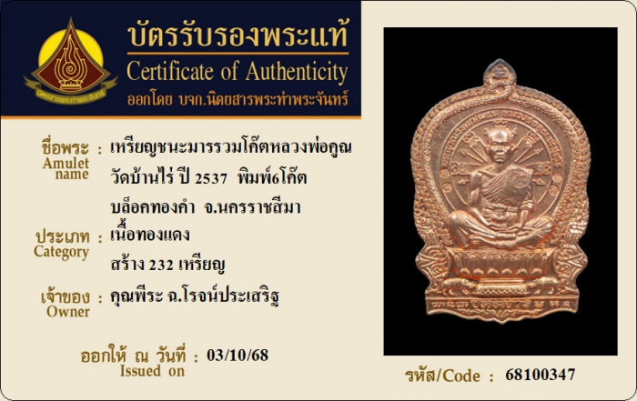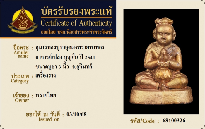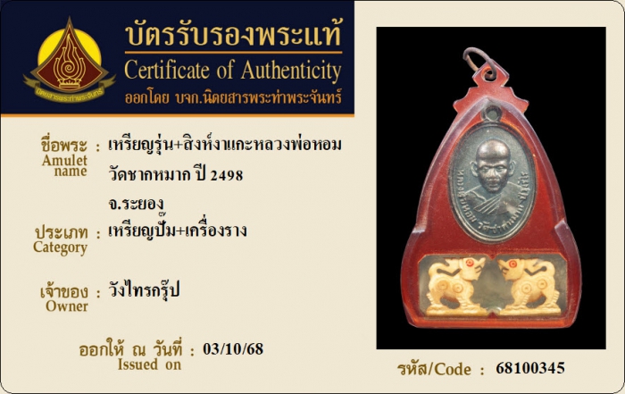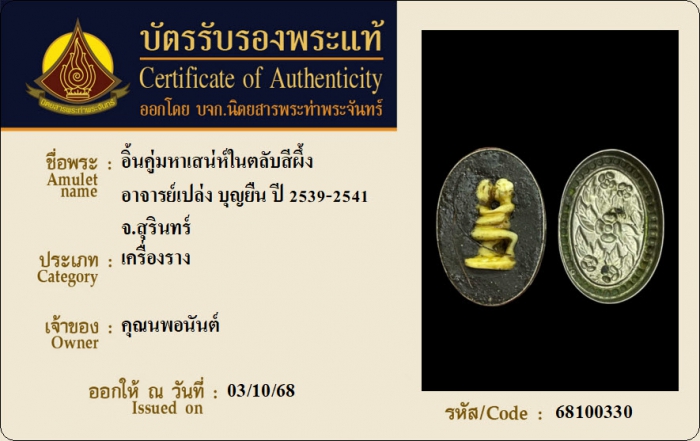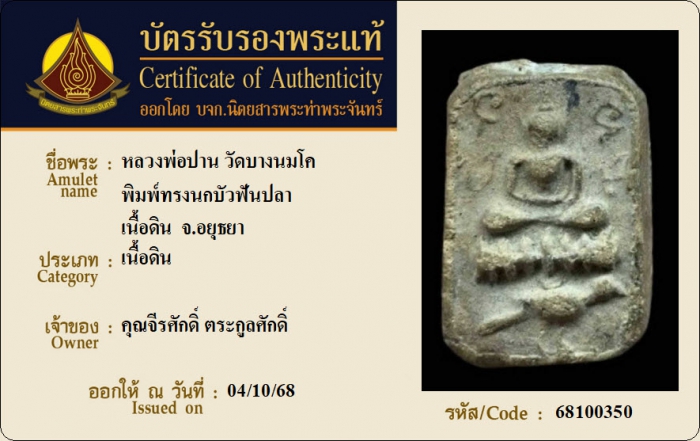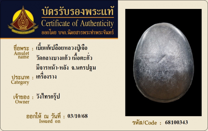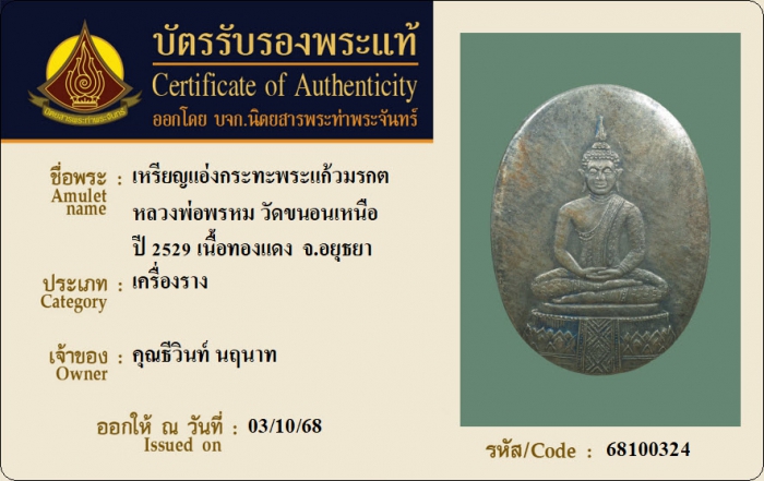 ค้นหาใบการันตีพระแท้