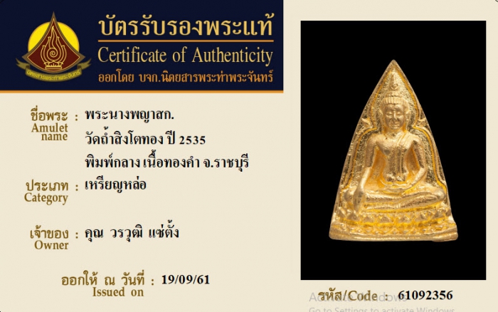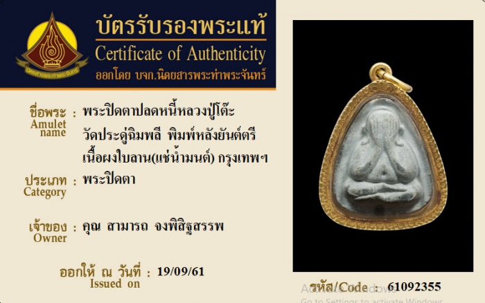 ค้นหาใบการันตีพระแท้
