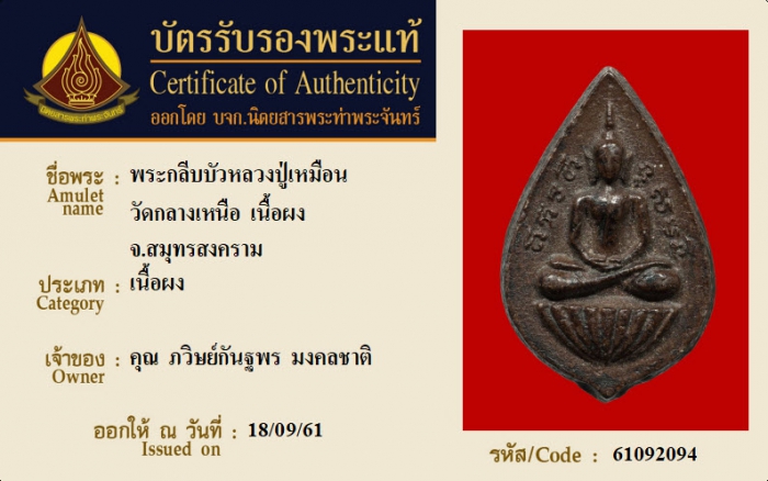 ค้นหาใบการันตีพระแท้