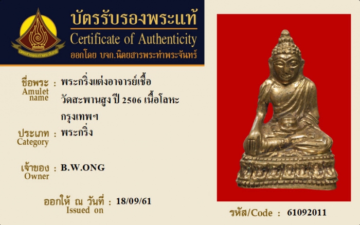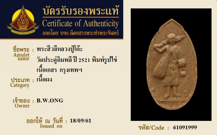 ค้นหาใบการันตีพระแท้
