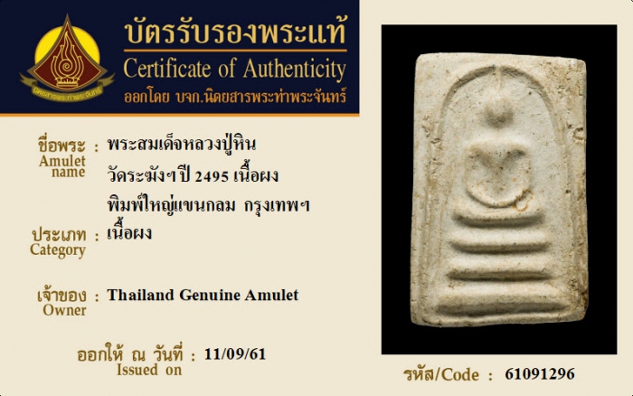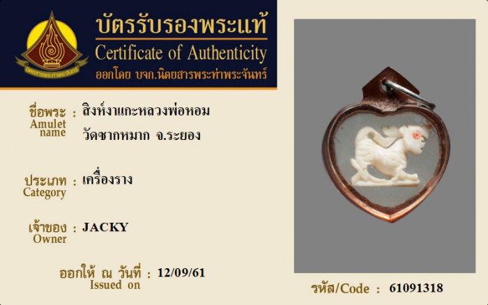 ค้นหาใบการันตีพระแท้