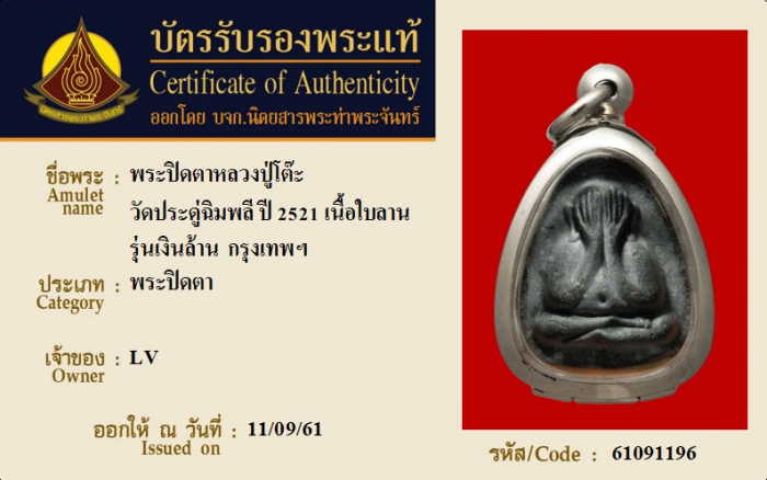 ค้นหาใบการันตีพระแท้