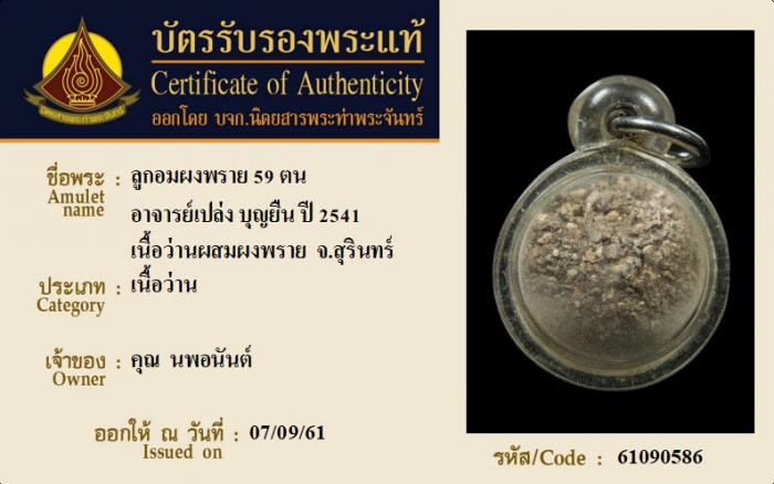 ค้นหาใบการันตีพระแท้