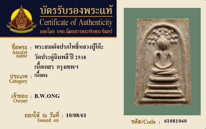 ค้นหาใบการันตีพระแท้