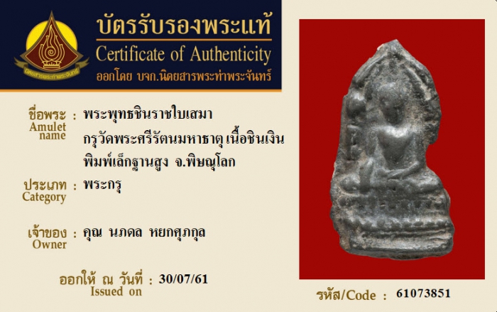 ค้นหาใบการันตีพระแท้