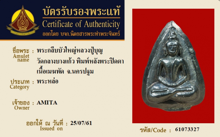 ค้นหาใบการันตีพระแท้